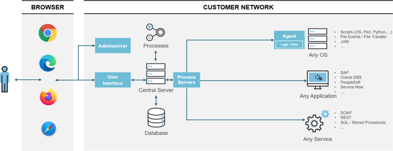 Note: RunMyJobs runs as a web application and can be configured and monitored with any supported browser.