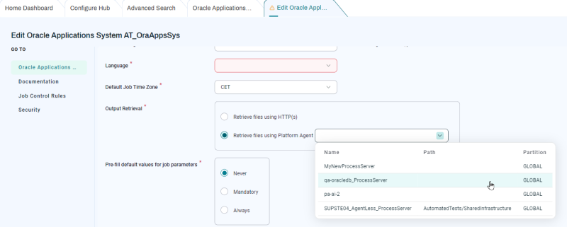 . To serve Oracle Applications output files, the Platform Agent must be configured to serve files from the Oracle Applications out