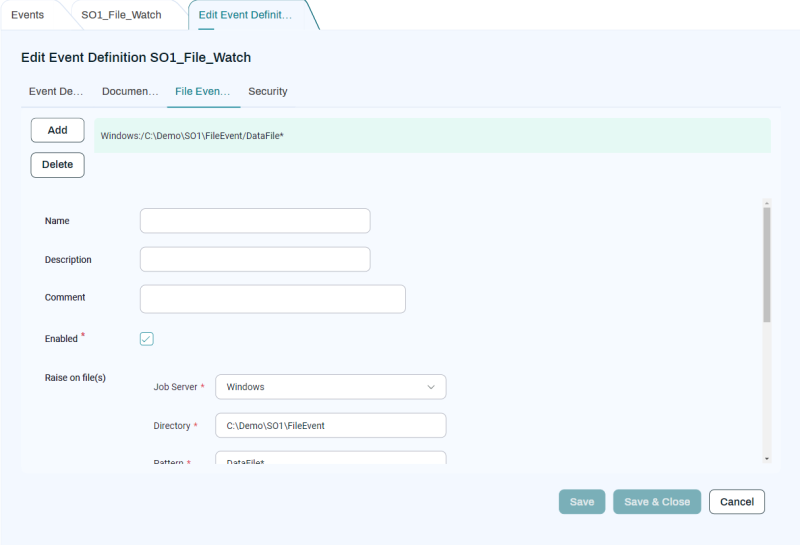 A File Event Definition is not a type of Event Definition. Rather, it is a rule associated with an Event Definition. A File Event Definition lets you specify that its parent Event should be raised when a file arrives in a particular directory.