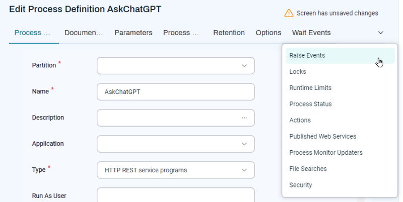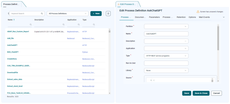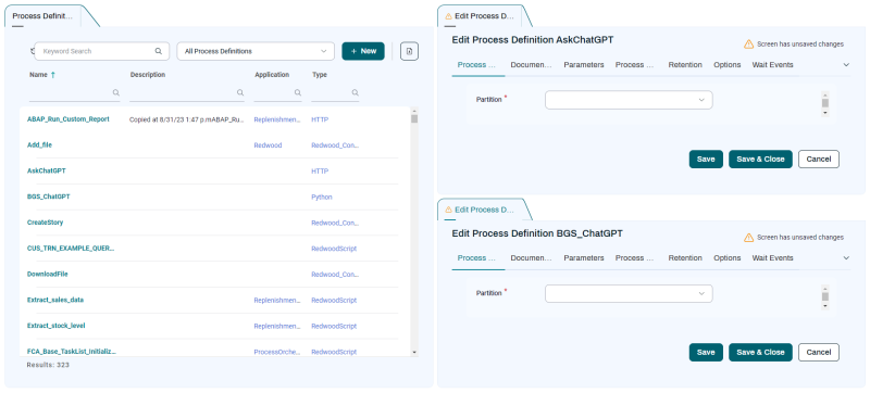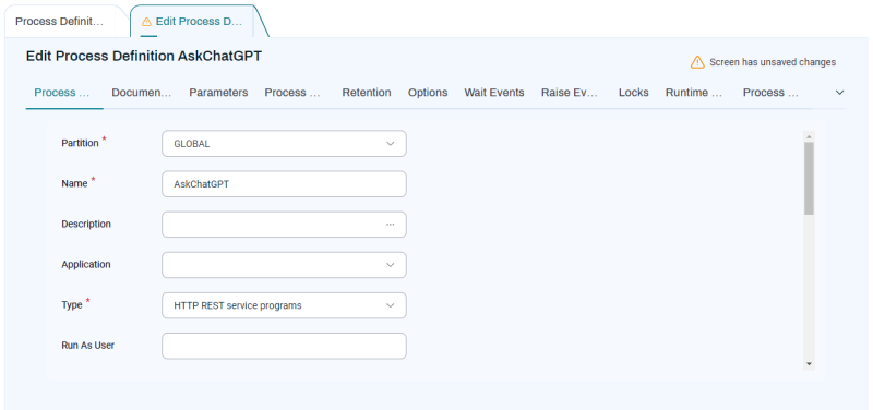 The Classic and Legacy UI themes typically display configuration options in a pop-up window. Although the options in such windows are still the same, the Modern UI displays them as tabs in the RunMyJobs browser window. For example, when you create or edit a Job, the configuration options display in a new tab.