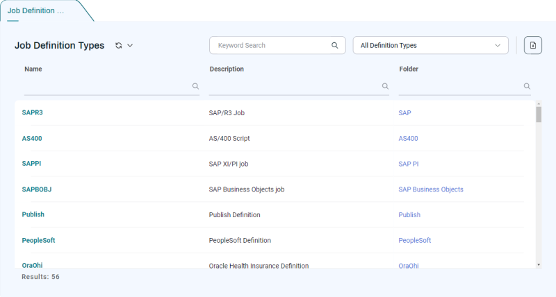 You can view all Job Definition Types by navigating to Configure > Admin > Configuration > Job Definition Types. Details about each Job Definition Type display in the Detail View.