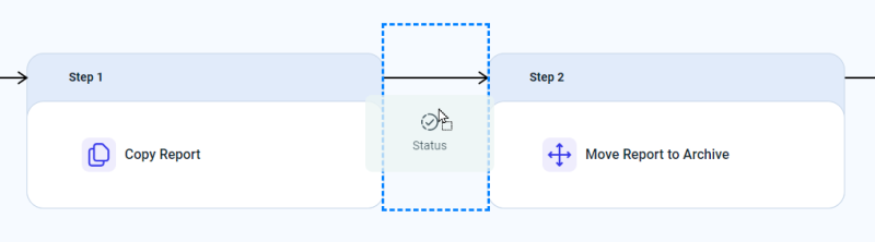 From the Decision Points overlay in the Workflow editor, drag the Status tile it to between two Steps.