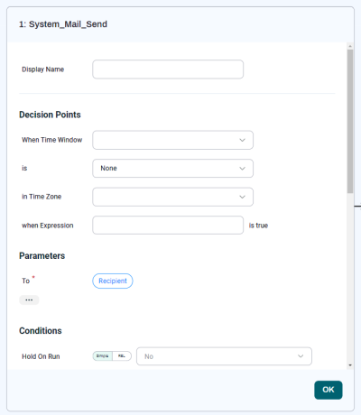 Time Window: A Time Window to limit the starting time of the Job Call. Can contain a String REL expression that returns the name (