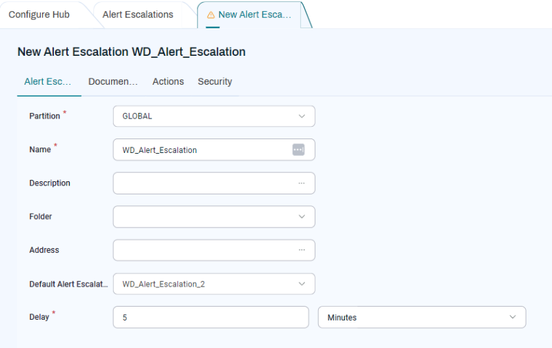 - Select or create a Default Alert Escalation or create an Escalation Expression. The Escalation Expression field supports