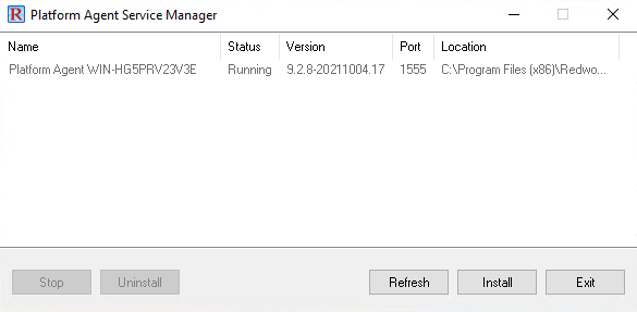 is the release number. To install the Platform Agent, run this installer. The installation location will be C:\Program Files (x86)\Redwood\agent