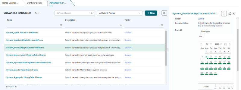 Note: In the Classic and Legacy UI, Advanced Schedules are referred to as "Submit Frames."