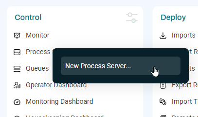 You can right-click items in the Configuration Hub screen to perform many tasks without even opening the corresponding screen. For example, if you want to create a new Job Server, you can right-click Job Servers and choose New Job Server without ever having to open the Job Servers screen.