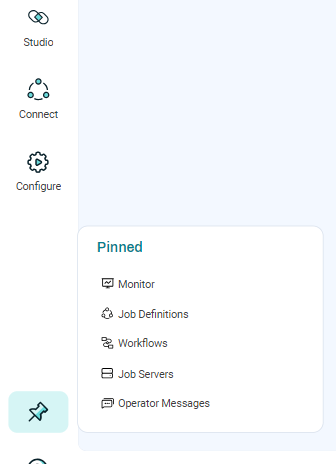 To add a screen to the Pinned section at the top, hover over it until the pin icon displays, then click the pin icon.