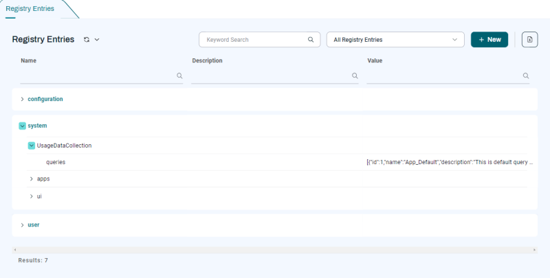 New > New Registry Entry: This option lets you create a new Registry entry at a particular place in the hierarchy by choosing an option from a Parent Registry Entry dropdown list. You can also accomplish this by right-clicking the parent Registry entry and choosing New Child Registry Entry.