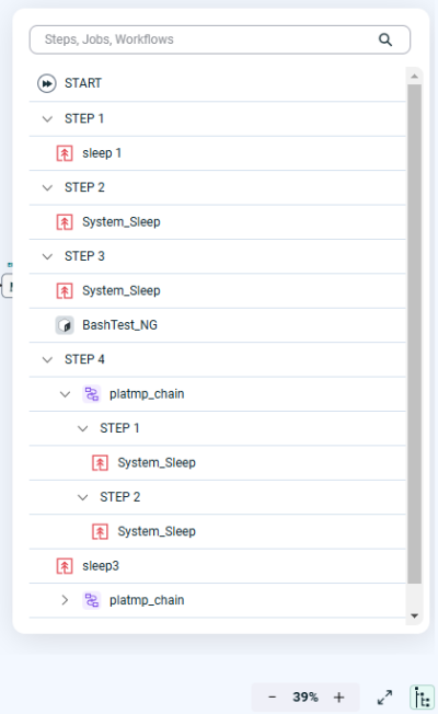 In large or complex Workflows, it can sometimes be difficult to find a particular Job Call, Step, or sub-Workflow. To make this easier, you can click