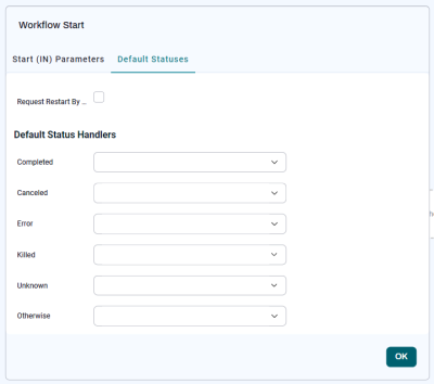 If Request Restart By Default is checked, such statuses are automatically set to Request Restart, and Default Status Handlers are not editable.