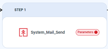 Assume you've created a Workflow with a first Step that contains a System_Mail_Send Job Call. By default, when you first create that Job Call, RunMyJobs shows a red indicator to show that you need to supply a Parameter value.