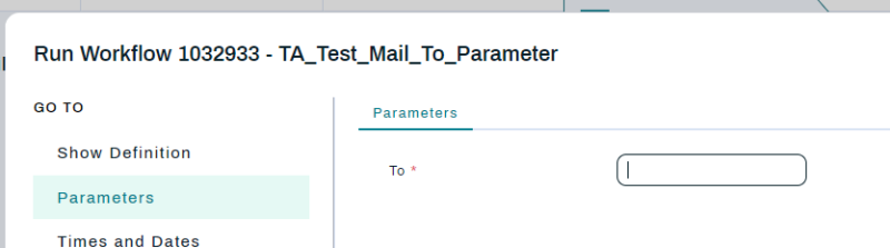 Now the user will be able to supply a To value when they run the Workflow, and that value will be mapped to the To field in the System_Mail_SendJob Call.