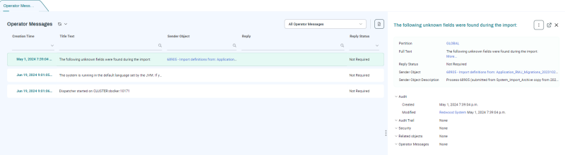 Some Operator Messages require a reply, and others do not. The Reply Status column indicates whether each Operator Message requires a reply or not. The possible statuses are: