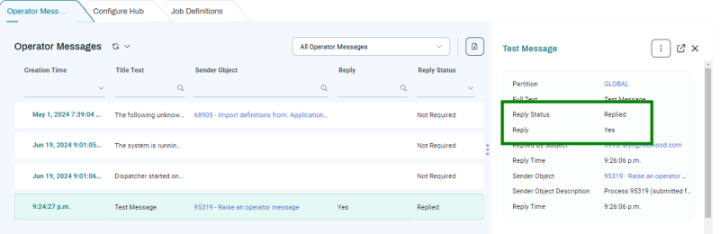 Tip: You can reply to Job-related Operator Messages from the context menu of the related Job.